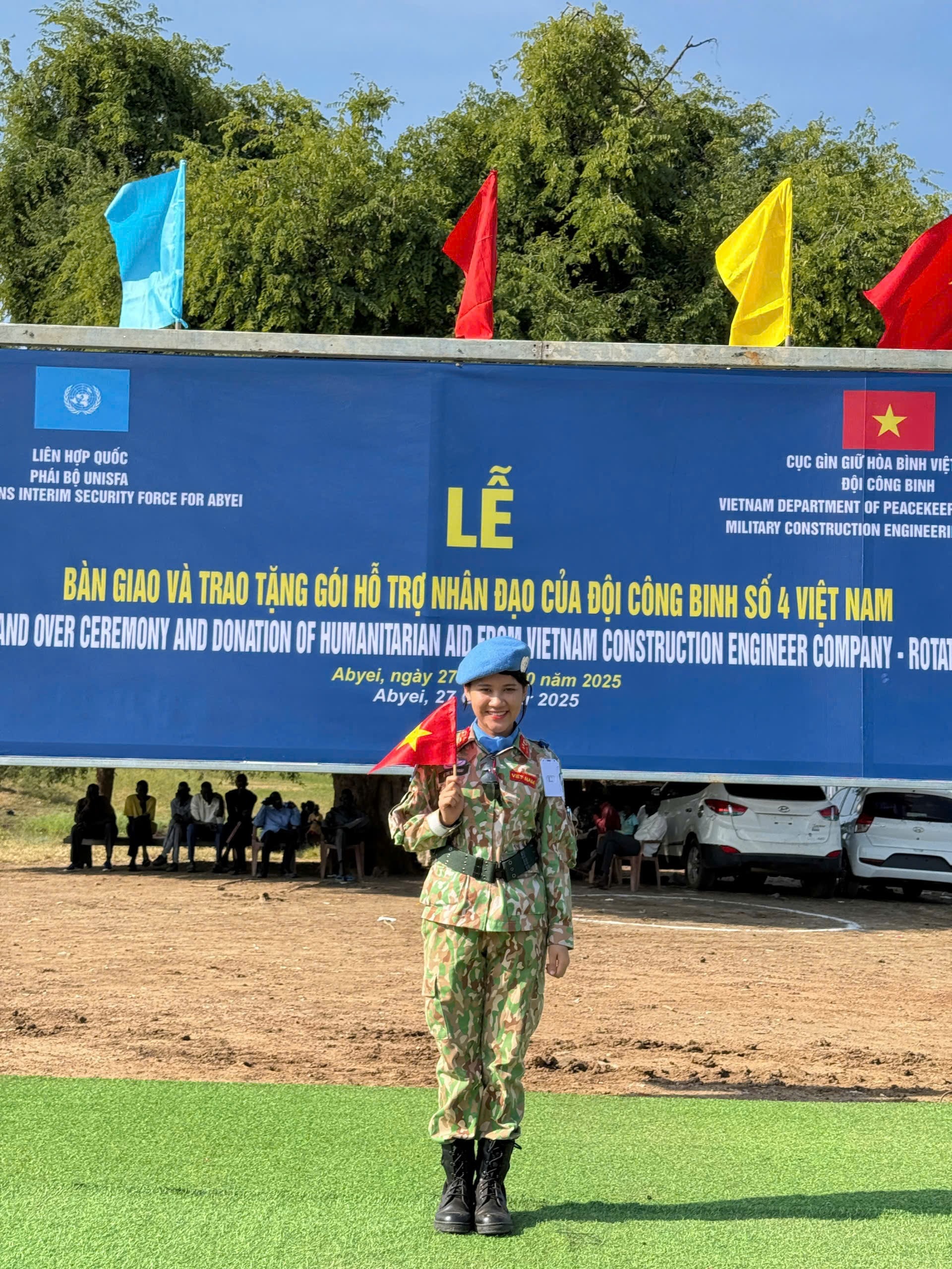 Với cô gái 25 tuổi, đây là quãng thanh xuân đặc biệt khi được sống, làm việc và cống hiến trong màu áo lính, mang theo lá cờ Việt Nam đến một vùng đất rất xa.