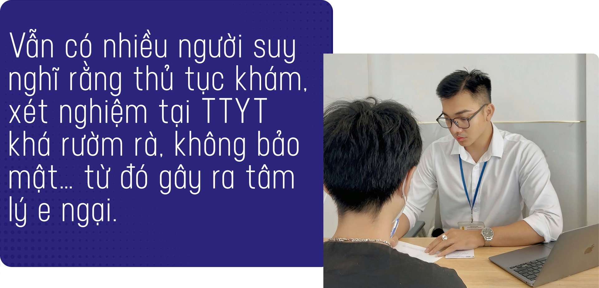 Câu hỏi đặt ra là: Vì sao nhiều người tìm đến căn gác 10m² của Tĩnh trên phố Tân Mai thay vì các bệnh viện lớn? Theo Tĩnh, điều này bắt nguồn từ những rào cản tâm lý khó vượt qua. "Người ta chọn đến với nhân viên hỗ trợ cộng đồng vì sự tiện lợi và bảo mật"- anh giải thích.