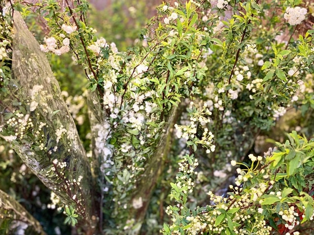 Tiểu tú cầu có từng chùm hoa trắng nhỏ ly ty cũng thu hút nhiều khách.