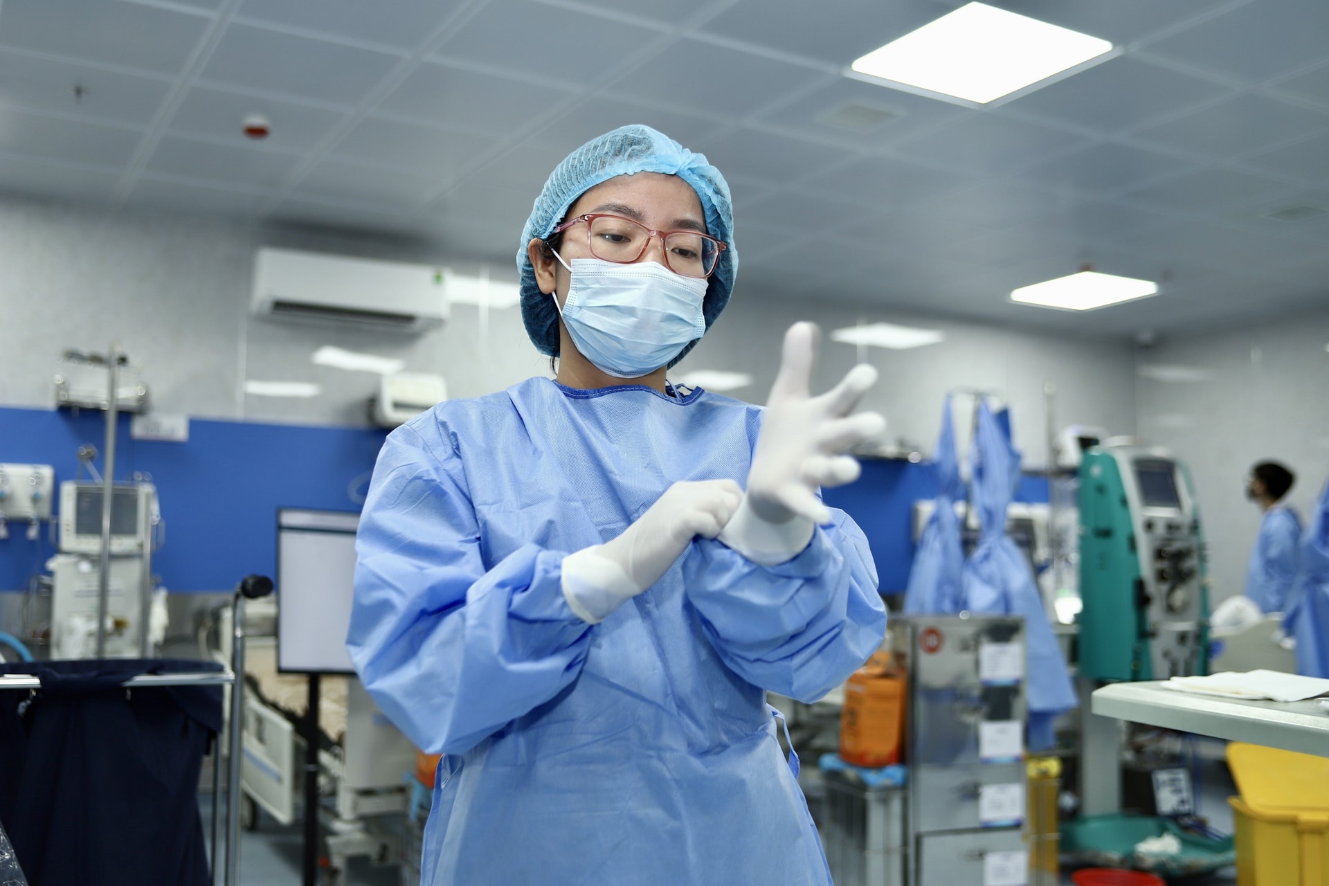 ThS.BS nội trú Trần Huyền Trang chuẩn bị trang phục bảo hộ trước khi bước vào ca trực Tết tại Trung tâm Cấp cứu và Hồi sức tích cực, Bệnh viện Đại học Y Hà Nội. Với chị và đồng nghiệp, những ngày cuối năm là thời điểm sẵn sàng đối diện các ca bệnh nặng, nguy kịch, khi bệnh tật không có khái niệm nghỉ lễ.